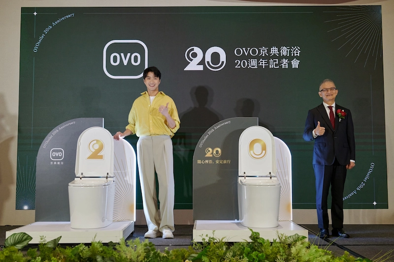 為慶祝 OVO 成立 20 年,特別於 2025 年 4 月 12 日舉辦週年記者會,邀請媒體朋友們共襄盛舉。歡慶之餘,現場更展示旗艦款「Vortex⁺ 渦流式全自動馬桶」,及年度新色「紳士灰」系列產品,讓在場媒體共同看見與體驗 OVO 為衛浴生活帶來的進步與轉變。