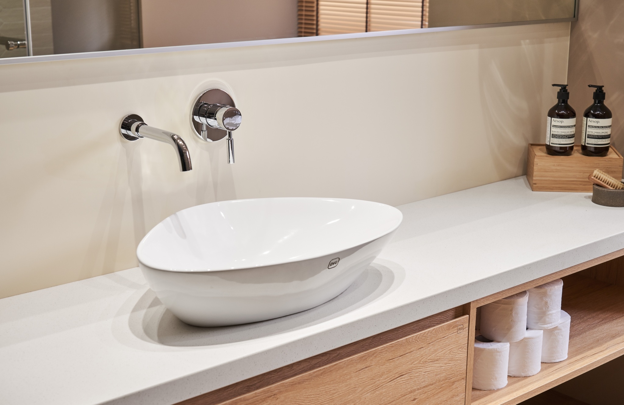 水龍頭也為一大重點,OVO推薦的水龍頭出水綿密,水流如霧狀柔緩舒適,還不會四處飛濺。因為搭配了瑞士Neoperl氣泡頭,它可以讓流經的水和空氣混合,讓水流有發泡的效果,有了空氣的加入,水的沖刷力甚至能提高,不僅在疫情時可以充分洗淨雙手,更能有效減少用水量。