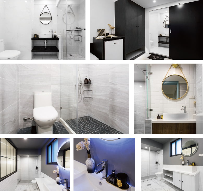 由於這次是老屋翻新,遇到最大的挑戰就是水路及防水問題,整體需要拆除重新規劃,另外要將一間老房隔間成三間套房,所以在每一間套房的衛浴空間及臥房的比例分配上,也須經過全盤思考才著手進行。