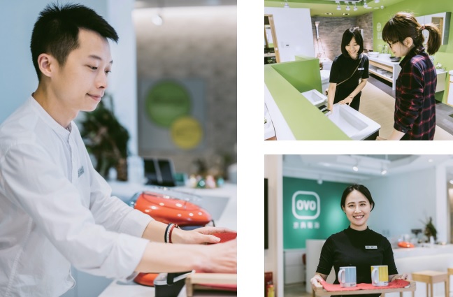OVO京典衛浴品牌形象館成立至今近五年,持續以五感體驗、產品專員諮詢作為主軸,發揮OVO獨有的服務精神,用溫暖人心的口碑,與顧客共創合適的衛浴空間。挑選衛浴產品的標準,大多是以個人的喜愛程度搭配現場空間進行選擇,由於OVO的產品線較多元,且開發尺寸較廣的系列產品,能解決台灣衛浴空間小、限制較多的問題,讓顧客在個人喜好及現場空間限制的拉扯中,找到完美平衡。