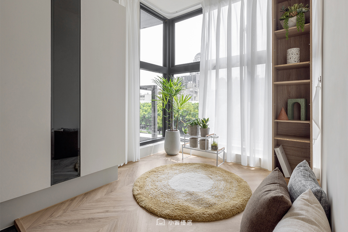 本次設計案分享為小寶優居於新竹市的案場,在整體住宅裝潢過程中,屋主特別在意衛浴空間;反而是客廳空間沿用了原舊裝潢改裝,把強烈的風格全數打掉。屋主喜愛的溫柔簡約,故強調空間的自然採光,搭配現代簡約的傢俱及軟裝,打造一片屬於屋主的冬日暖陽。