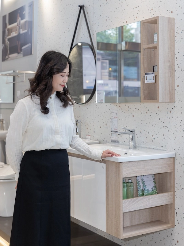 因應民眾貨比三家後,仍習慣到實體店親身體驗的購物旅程,杜總監提到,在全國電子店中店的櫃位規劃,專為台灣常見的狹長型、小空間等需求設定的衛浴設備展示情境,從馬桶、臉盆、收納櫃,到鏡子、花灑、衛浴配件等,都因應新型態門市的科技概念與民眾追求的設計感,展示多款式的搭配組合。民眾能實際操作衛浴設備,並清楚了解產品的材質、尺寸、價格等細節,輕鬆地在全國電子新型態門市,挑選最適合自身需求的衛浴設備。
