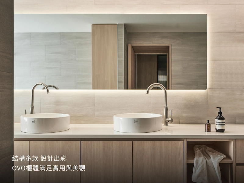 相較於市面上多數衛浴品牌,櫃體產品僅提供基本搭配,OVO京典衛浴開業之初就已針對櫃體結構做出完整規劃。經過20年的深耕,從色系風格、尺寸結構到功能細節,皆提供多樣的標準選項。不少設計師與屋主分享,入住後才真正體會到櫃體收納配置的實用價值,也有民眾坦言:「用起來才知道,真的有差」。