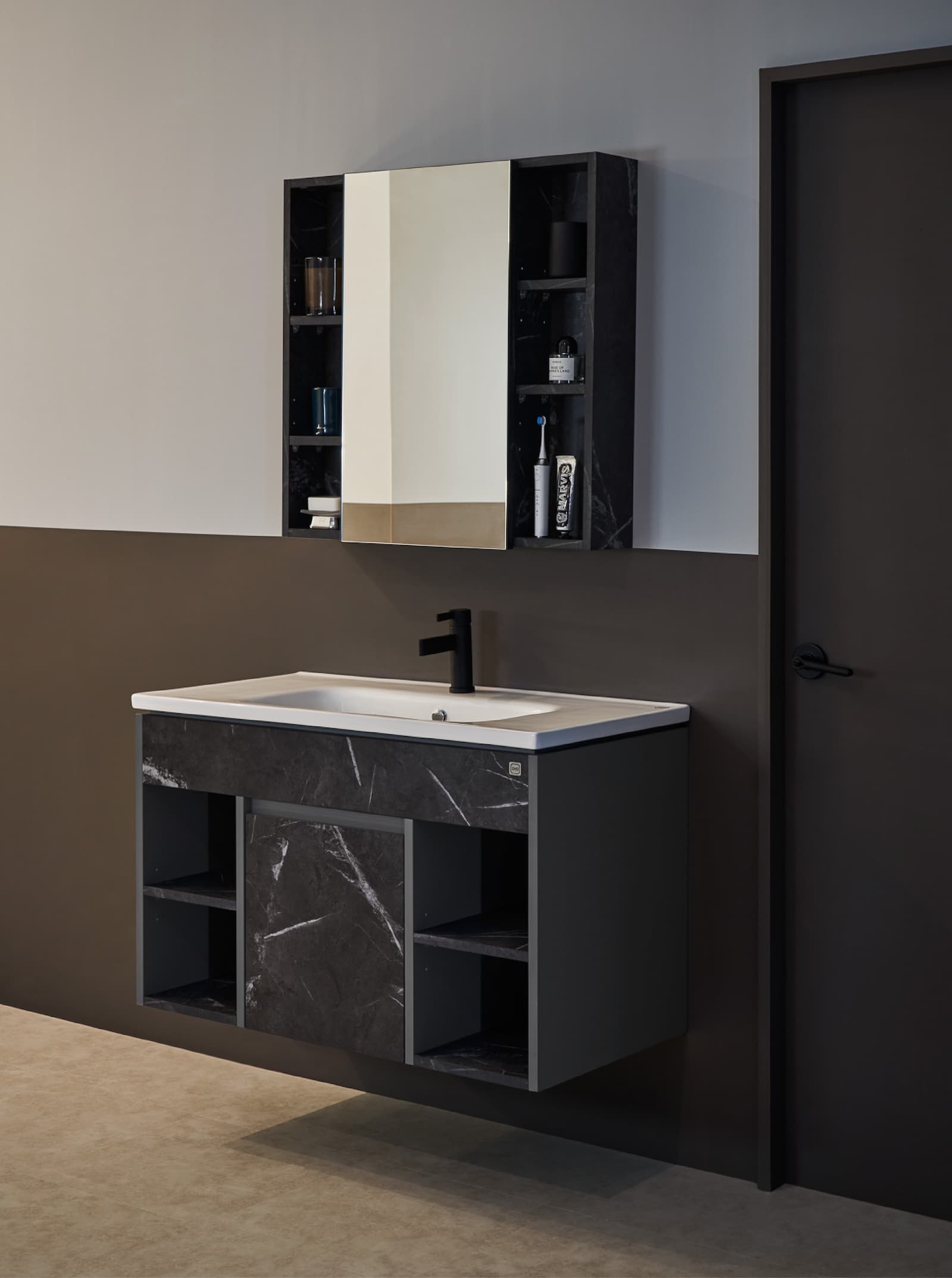 以黑、棕、白等中性色調做為基底,搭配科技智能產品更顯現代感,新的一天就此展開。