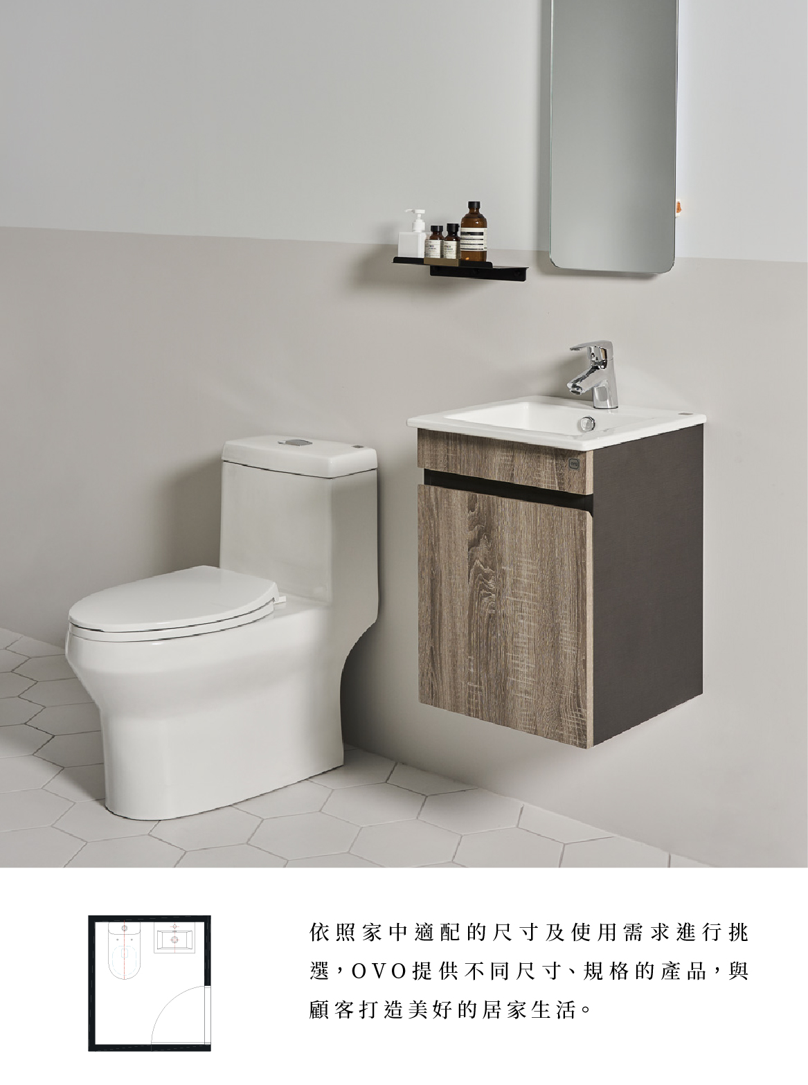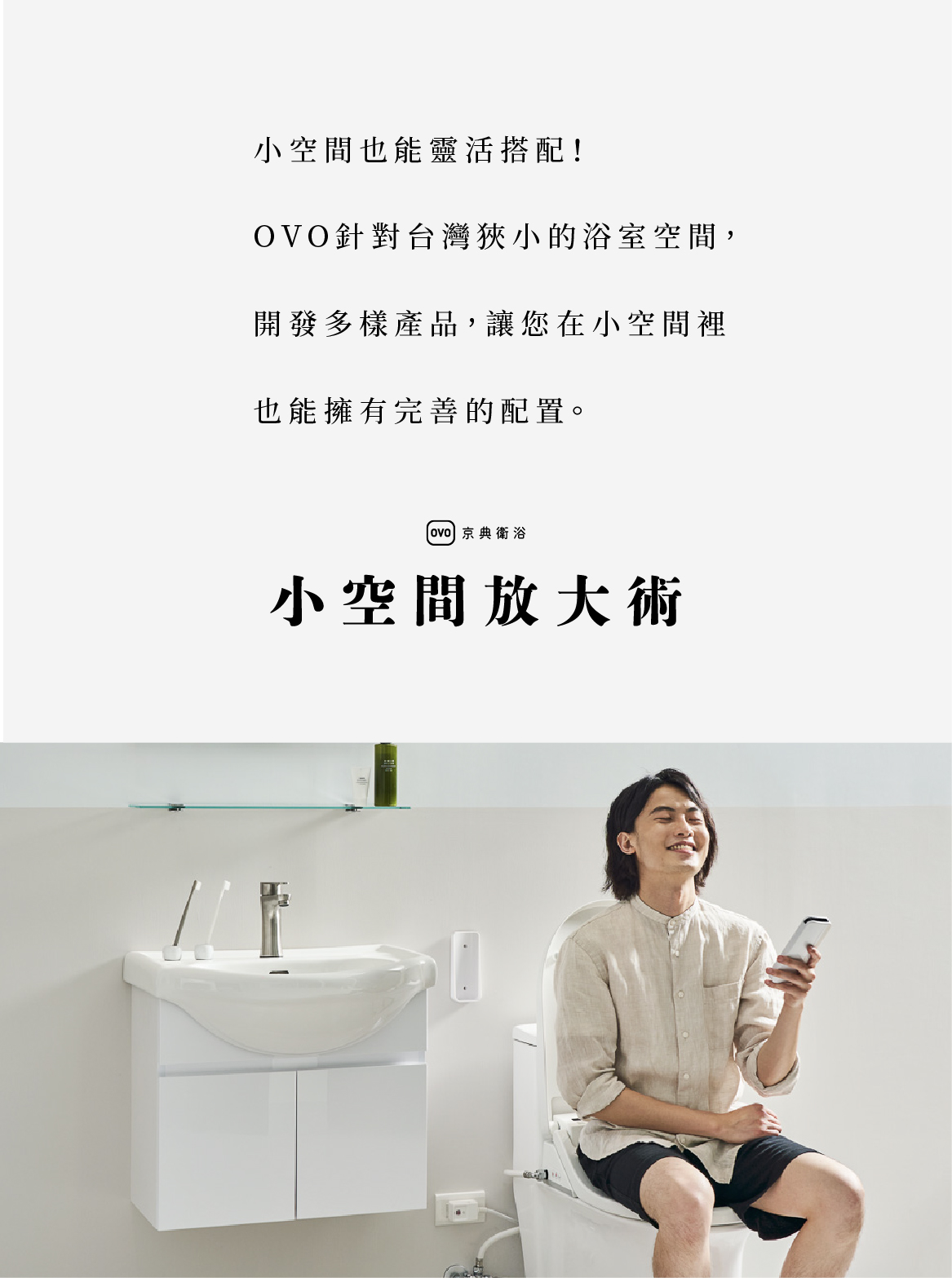 OVO針對台灣狹小的浴室空間,開發多樣產品,讓您在小空間裡也能擁有完善的配置。