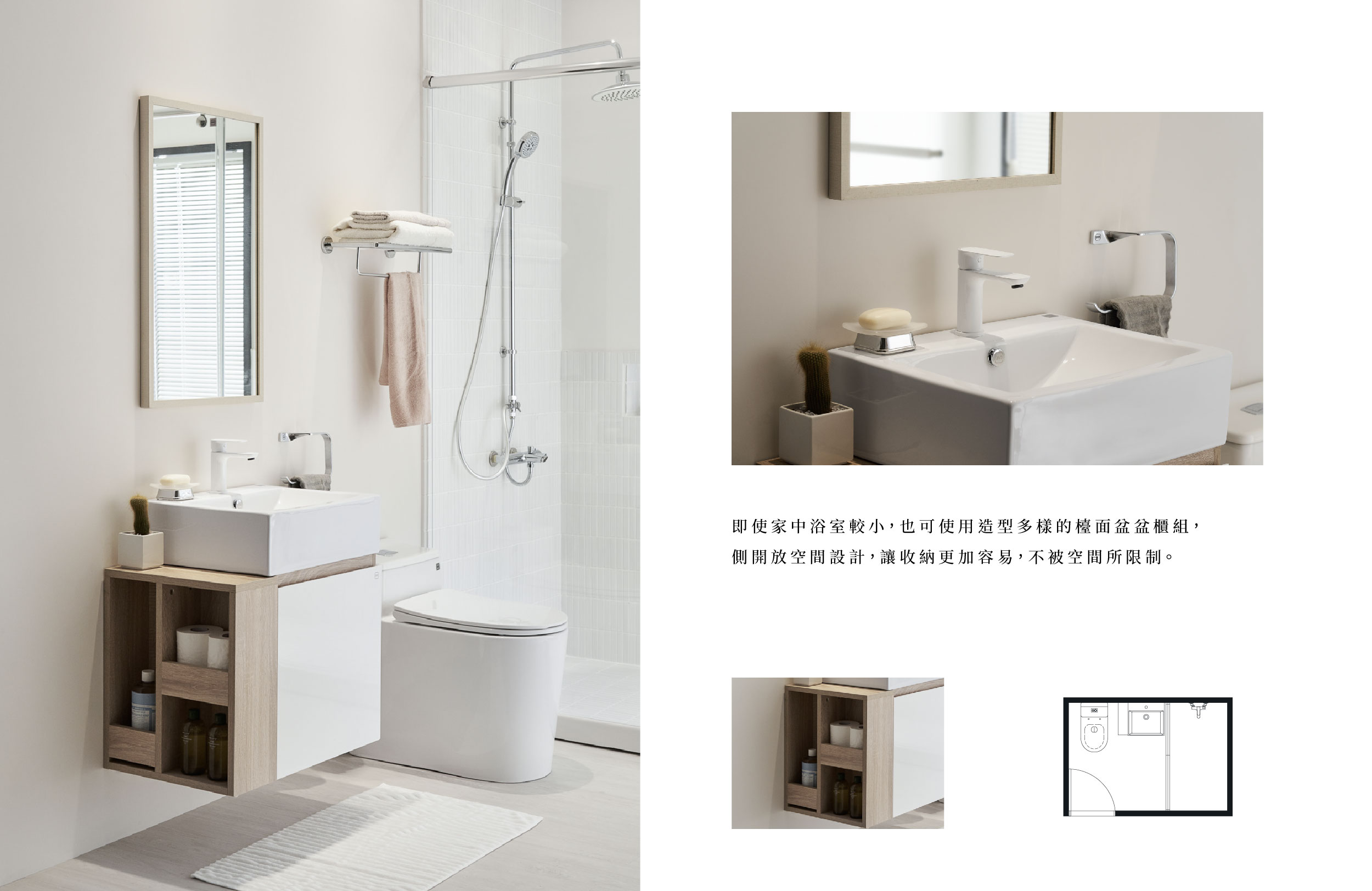 小空間也能靈活搭配,多樣化詮釋衛浴生活!