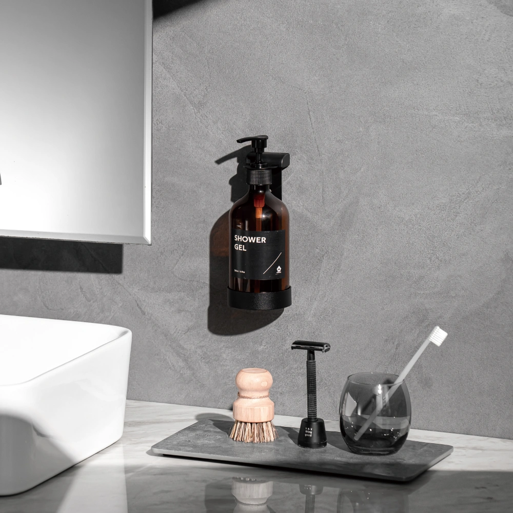 深色產品因色澤較深,在使用過程中容易因水中礦物質與皂垢的殘留,於表面形成白色水痕或水垢,視覺上較為顯眼,建議定期(1-2週)以中性 / 天然清潔劑,搭配乾淨的軟布擦拭保養。
