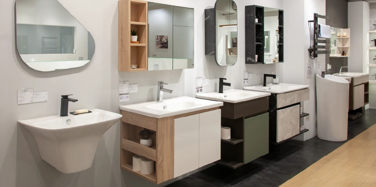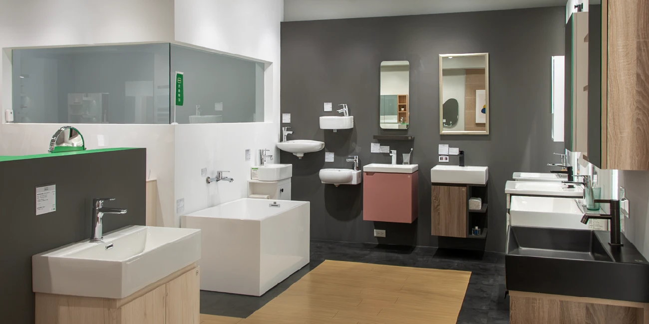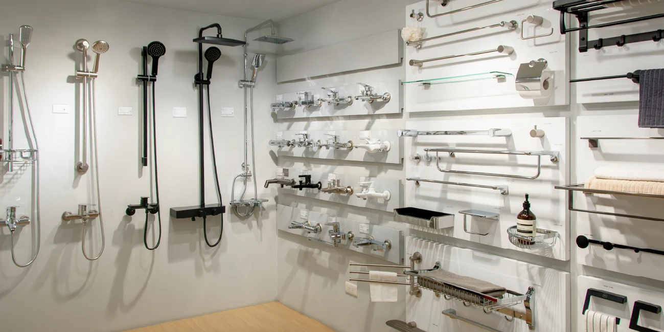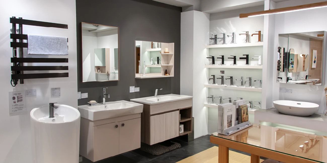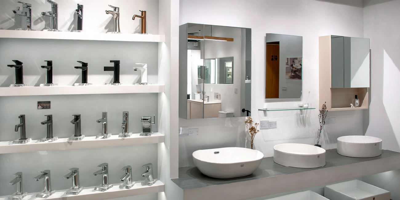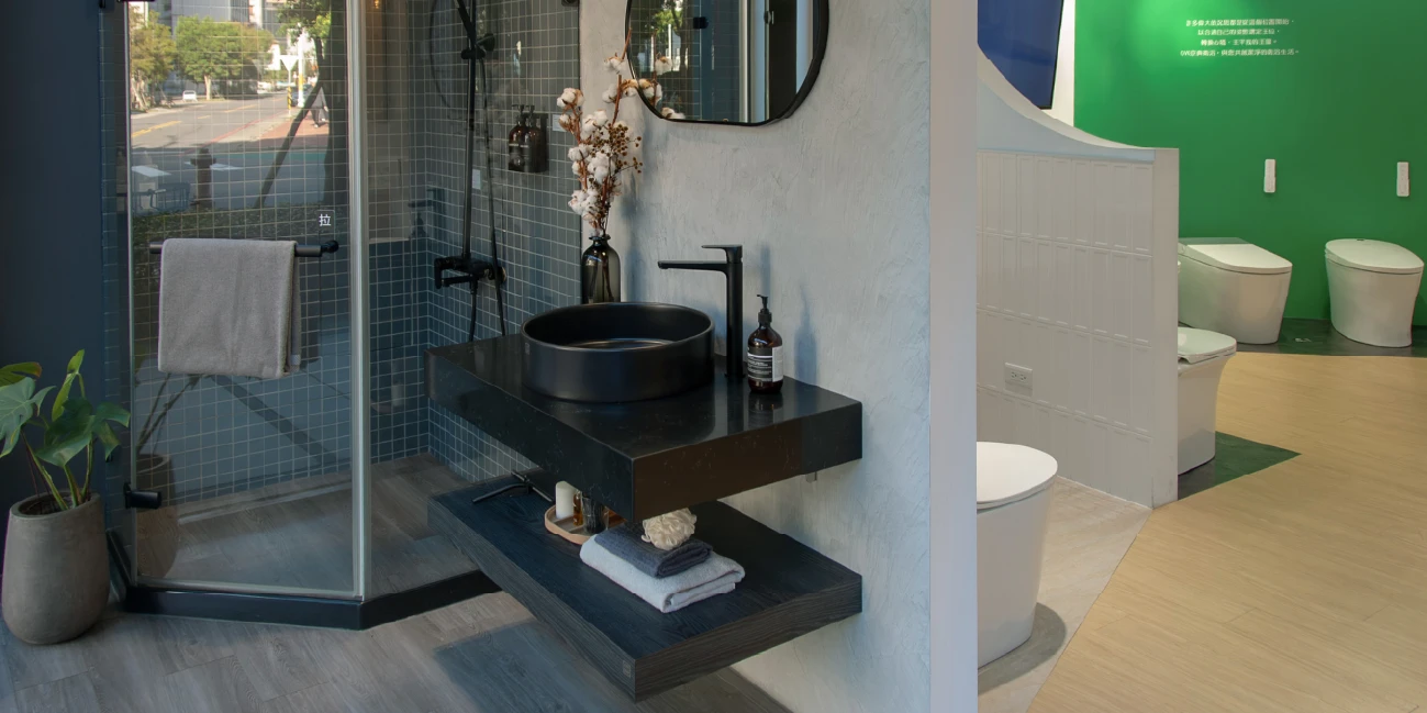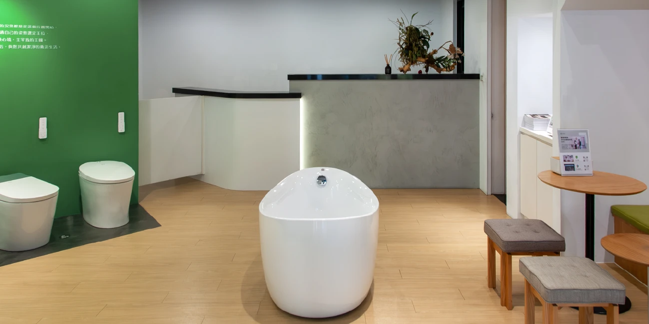 以明亮開放的空間設計,呈現多樣化的衛浴組合。從馬桶、臉盆、浴櫃到淋浴設備,展現整體衛浴的設計美學。透過材質、色系與比例的搭配,營造貼近生活的氛圍,啟發顧客對理想衛浴空間的想像。